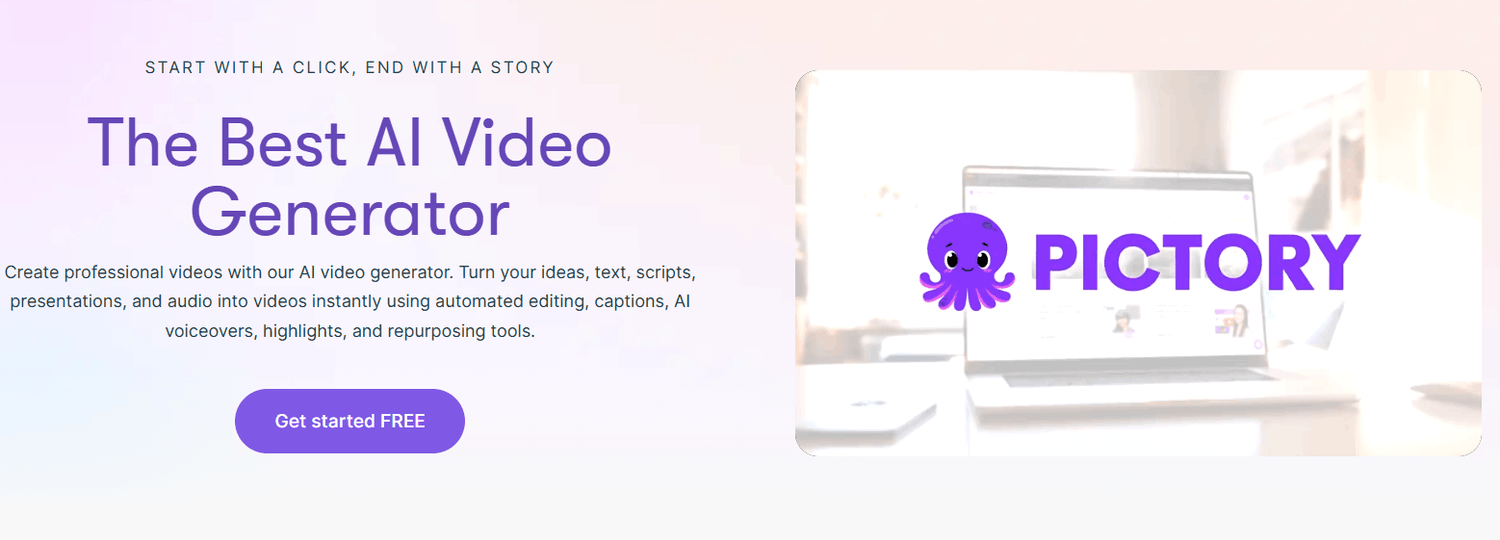 Pictory AI is a professional AI video generator that turns your existing content into stunning AI videos automatically.